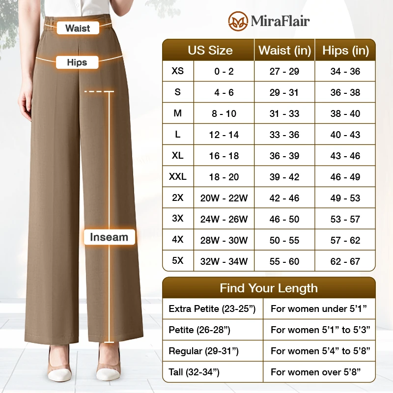 Experience timeless chic with MiraFlair, wide-leg trousers that bring effortless comfort, flowing elegance, and a flattering silhouette for senior women