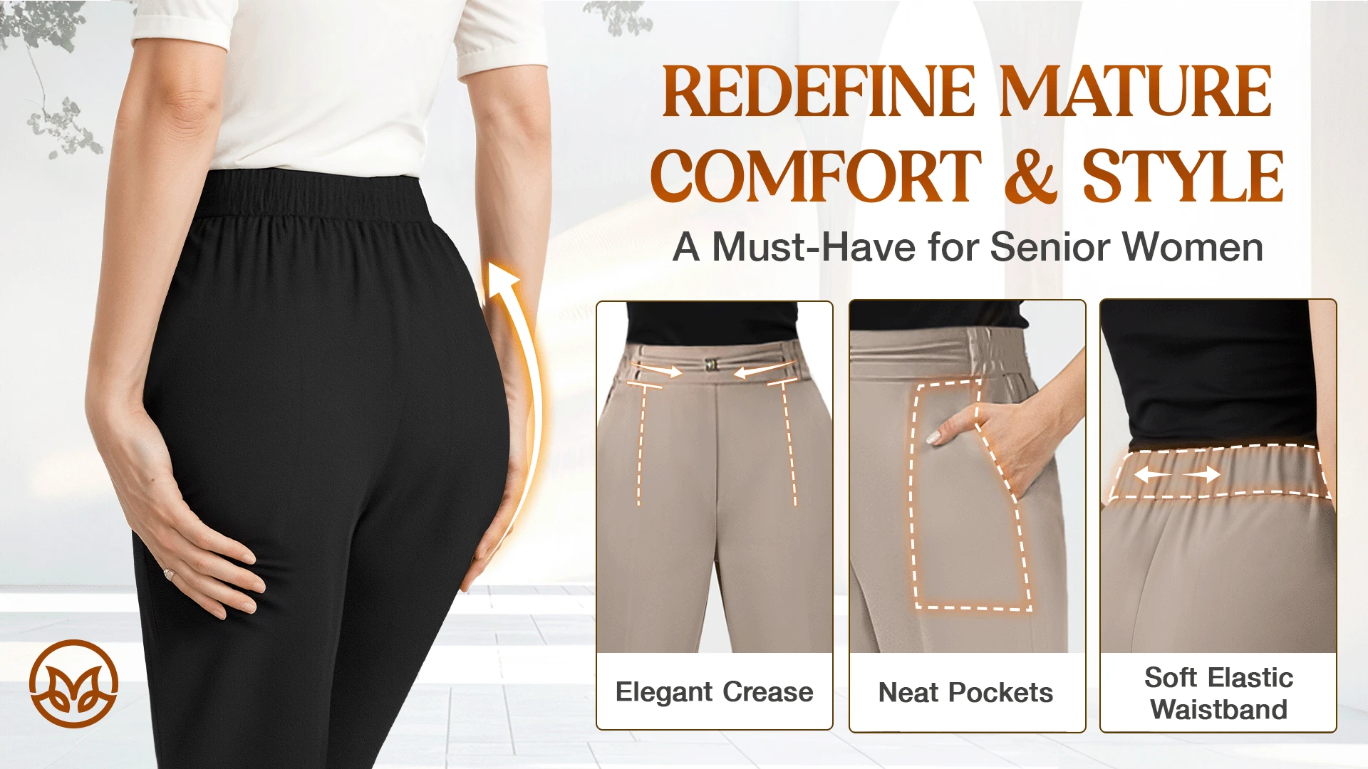Experience timeless chic with MiraFlair, wide-leg trousers that bring effortless comfort, flowing elegance, and a flattering silhouette - thoughtfully designed for senior women who seek both style and ease in every step.