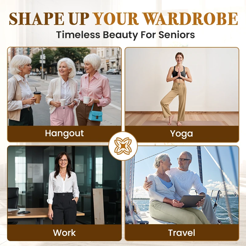 Rediscover everyday elegance with SoraEase, the perfect pants designed to flatter mature women with effortless comfort and timeless style.